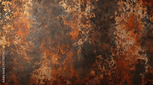 Rust-textured iron wall background with organic oxidation, darkened metallic patina, and deep color variations.
