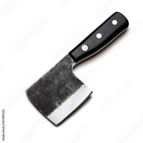 Rusty Cleaver Knife with Black Handle on White Background in Studio