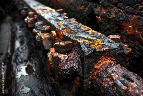 Rusty industrial machinery close-up factory floor photograph dimly lit macro perspective aging equipment and decay
