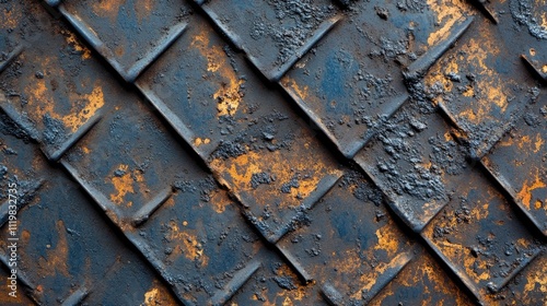 Rusty iron plate texture with intricate patterns and colorful surface details showcasing wear and age in a unique close-up view.