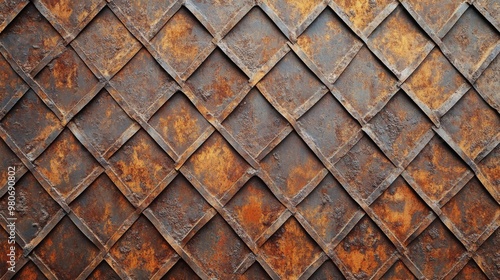 Rusty metal background or texture. Rusty metal sheet with rhombus pattern