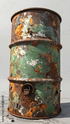 Rusty metal barrel on a light surface