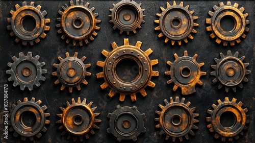 Rusty Metal Gears on a Dark Background Industrial Texture for Mechanical Concepts. Generative AI