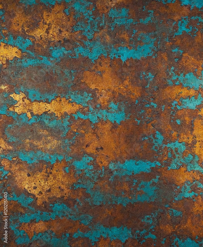 Rusty metal with blue and gold paint, Grunge metal background, Texture scratches and cracks, Iron surface full area, texture image
