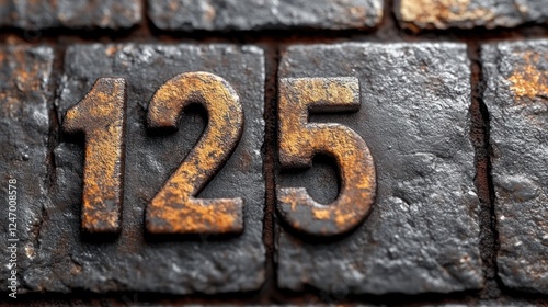 Rusty Number 125 on Stone, Background Texture