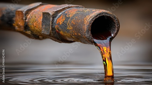 Rusty Pipe Pouring Dark Liquid Substance Environmental Pollution Concept