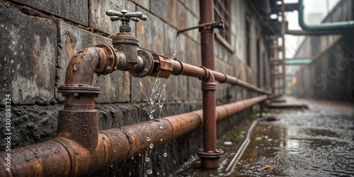 rusty, pipes, rust, industry, old, abandoned, communications, water, tap, plumbing