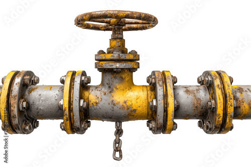 Rusty Yellow Industrial Pipe Valve On Transparent Background
