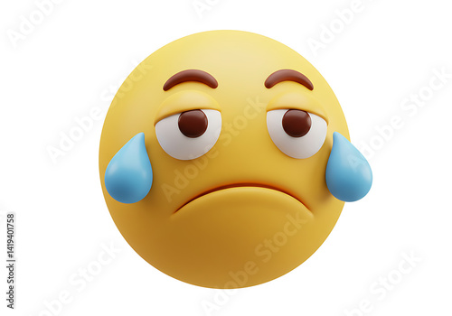 Sad Emoji: 3D Rendering of a Crying Face Emoji