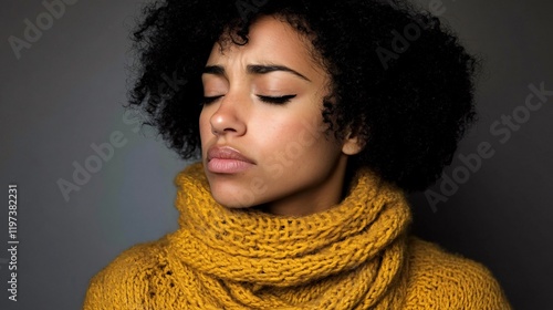 Sad Young Woman in Mustard Yellow Knit Sweater