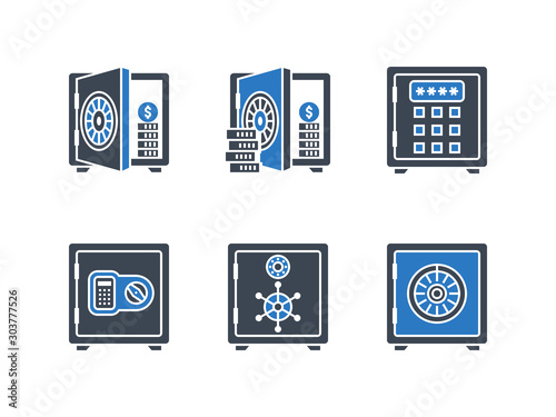 Safes related vector glyph icon set.