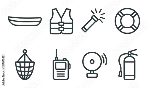 Safety and emergency linear icon set. rescue and protection symbol collection