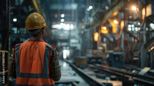 Safety helmets and vests are worn by all workers under the engineer's supervision to maintain a secure work environment.