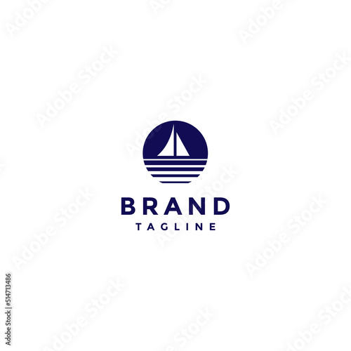 Sailboat icon inside circle with seawater reflection lines. Minimalist Illustration Of A Sailboat Logo Design.