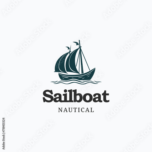 sailing boat yacht logo vector illustration isolated on white. Yacht club logotype