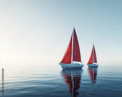 Sailing yachts in the harbor with reflections in the water, simple and realistic style, white background, perspective composition.