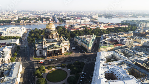 Saint Isaac's Cathedral in Saint Petersburg Aerial View of the city in the morning