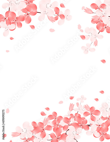 Sakura Flower Frame. Cherry Blossom With Petals Falling Background. Spring Flower Bloom Illustration.