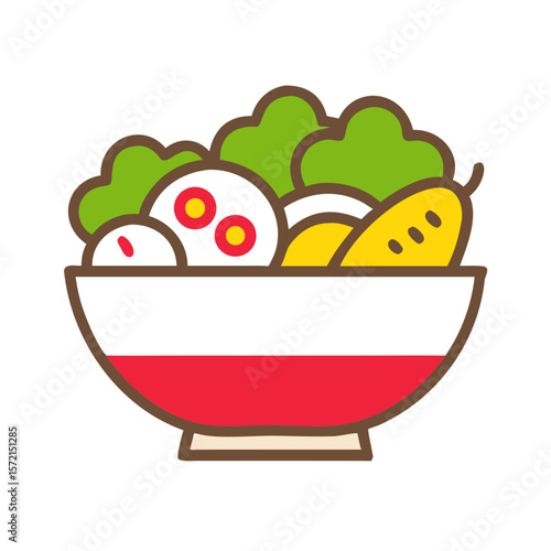 Salad bowl with colorful veggies in rustic dish, perfect for food blogs, menu designs, healthy lifestyle content, and social media.