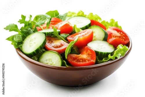 Salad with tomatoes and cucumbers, white background. AI generated illustration.