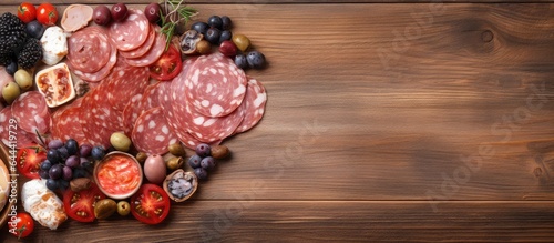 Salami and olives on a isolated pastel background Copy space as an antipasto