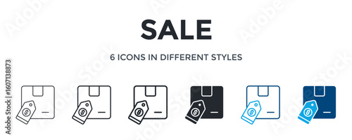 Sale Icon In Different Style Vector Illustration. Designed In Thin Line, Regular Line, Bold Line, Glyph, Color Line, And Color Glyph Style Can Be Used For Web