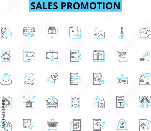 Sales promotion linear icons set. Discount, Clearance, Sale, Rebate, Coupon, Freebie, BOGO line vector and concept signs. Sweepstakes,Contest,Offer outline illustrations