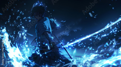 samurai anime character with blue background
