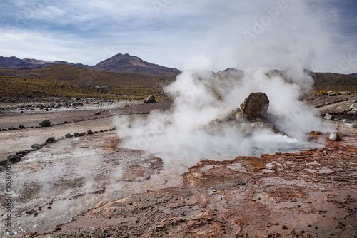 San Pedro de Atacama, Chile - Dec 2, 2023: Early morning at the volcanic El Tatio Geysers in the Atacama Desert