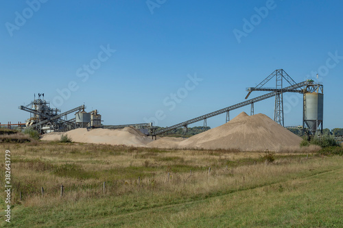 Sand mining factory near river Wall in Millingen aan de Rijn, Gelderland, Netherlands