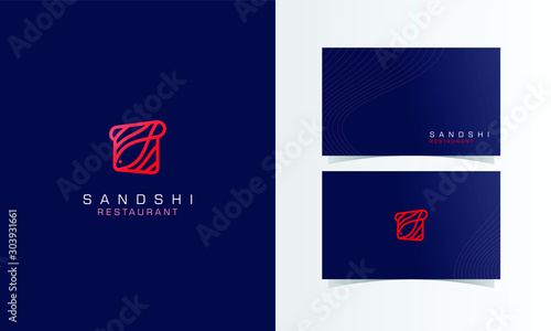 Sandwich Sushi Restaurant logomark vector with business card template design for branding identity