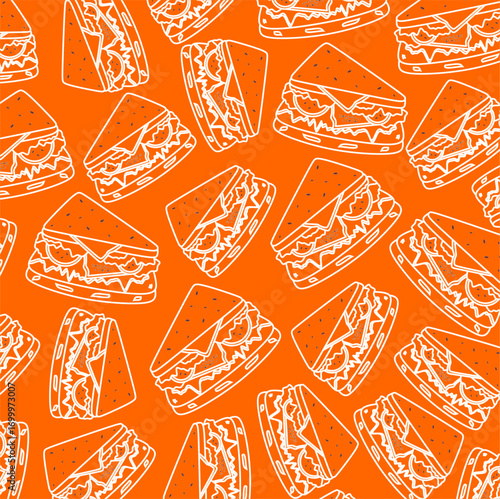 Sandwiches pattern. Seamless pattern of hand-drawn sandwiches in a sketch style. It suitable for use as a food-themed background, wallpaper, textile design, or wrapping paper.