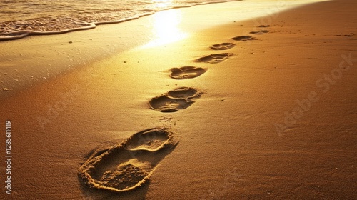 Sandy path to the ocean at golden hour, evoking timeless serenity and simplicity.