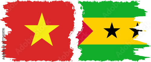 Sao Tome and Principe and Vietnam grunge flags connection vector