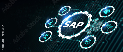 SAP System Software Automation concept on virtual screen data center. Business, modern technology, internet and networking concept
