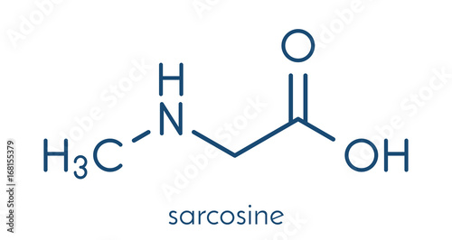 Sarcosine (N-methylglycine) molecule. Skeletal formula.