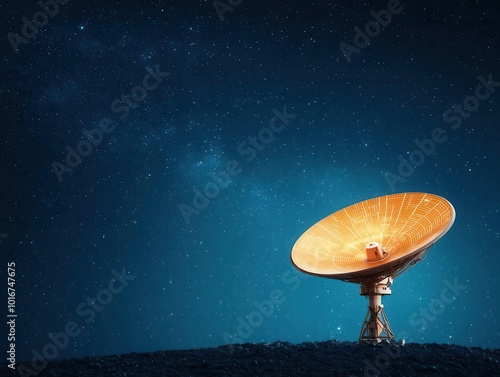 Satellite dish against a starry sky transmitting data, Aerospace Engineering, communication technology