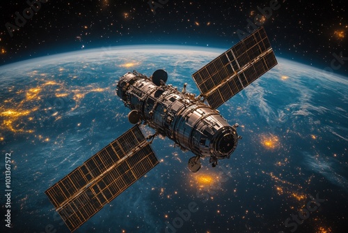 Satellite orbiting Earth, capturing astronomical data and images.