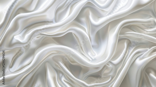 Satin fabric texture with soft, flowing waves in white color, creating elegant and luxurious appearance. Ideal for fashion and interior design projects