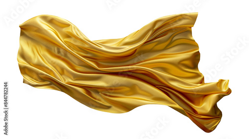 Satin smooth fabric of golden color isolated on a transparent background. Design element, abstract background. Generative AI