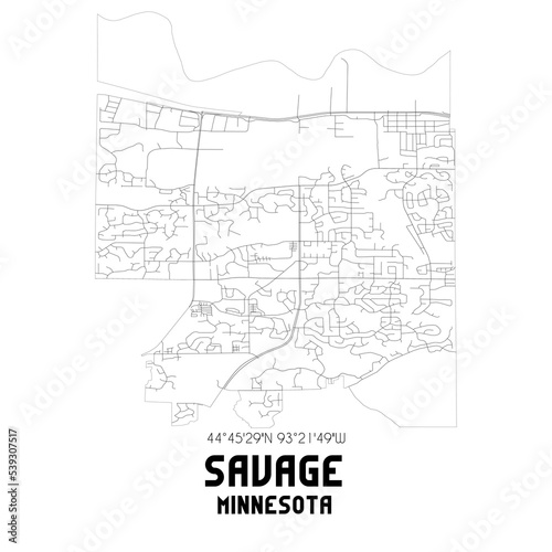 Savage Minnesota. US street map with black and white lines.
