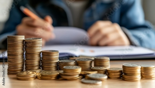 Saving and budgeting. Stacks of coins showing financial growth