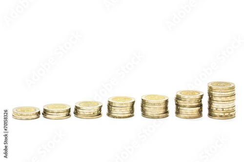 Savings, increasing columns of coins