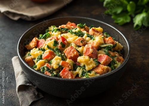 Savory Egg Dish with Greens on Dark Table