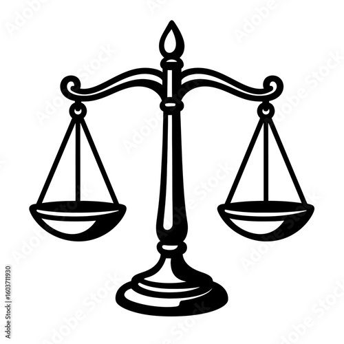 Scales of Justice Legal Symbol. An elegant and classic vintage illustration of a balanced scale, representing law, fairness, and rights.