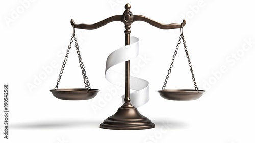 Scales of justice symbolizing balance and fairness, with a ribbon representing legal principles.