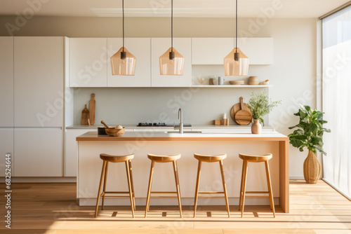 Scandinavian culinary elegance with this sleek and minimalist kitchen, where clean lines, functional design, and natural elements