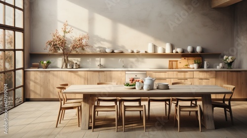 Scandinavian kitchen interior, wall mock up, 3d render. Created with generative AI.