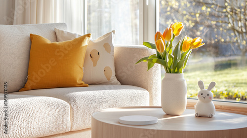 Scandinavian Living Room with Spring Decor and Cozy Accents