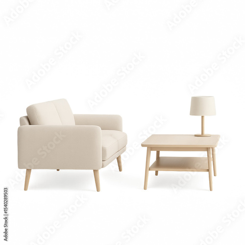 Scandinavian sofa coffee table lamp beige furniture set